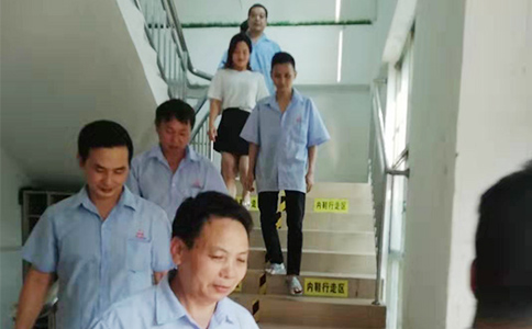 下午四點,疏散逃生演練正式開始,各部門的員工按照各車間負責人指示從安全通道及時有序撤離,及時到達緊急集合處,籃球場。