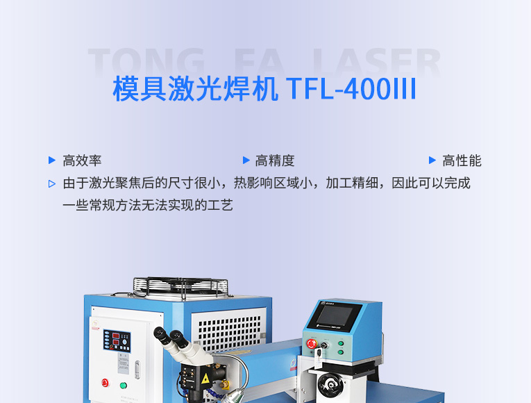 通發(fā)激光TFL-400Ⅲ大功率模具激光焊機,比普通激光焊機修復模具效率快1.5-2倍,適合0.3-0.6激光焊絲,大功率更適合修復鈹銅模具、鋁模等較難修復的模具。